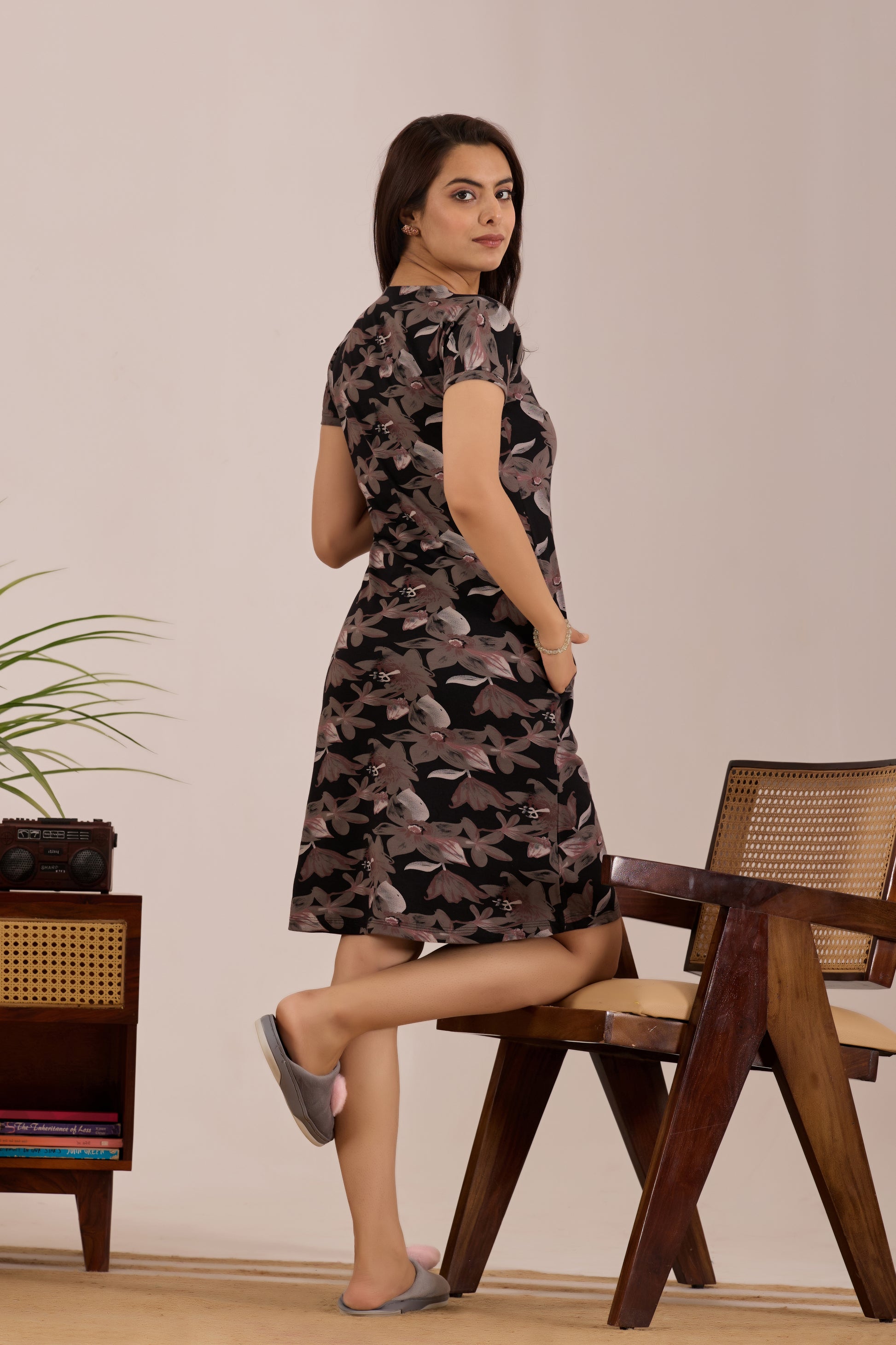 EBONY BLACK FLORA SHORT NIGHTY