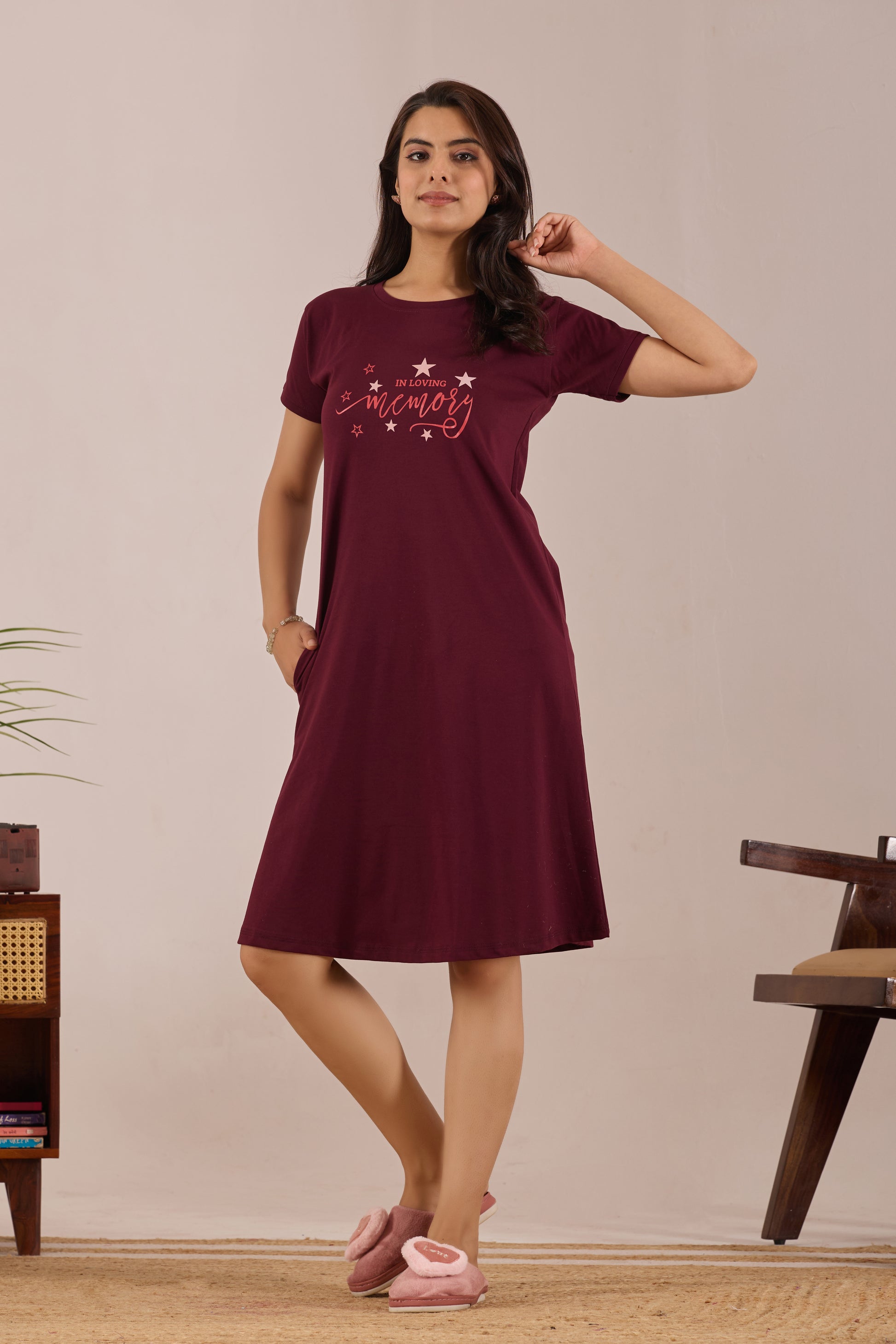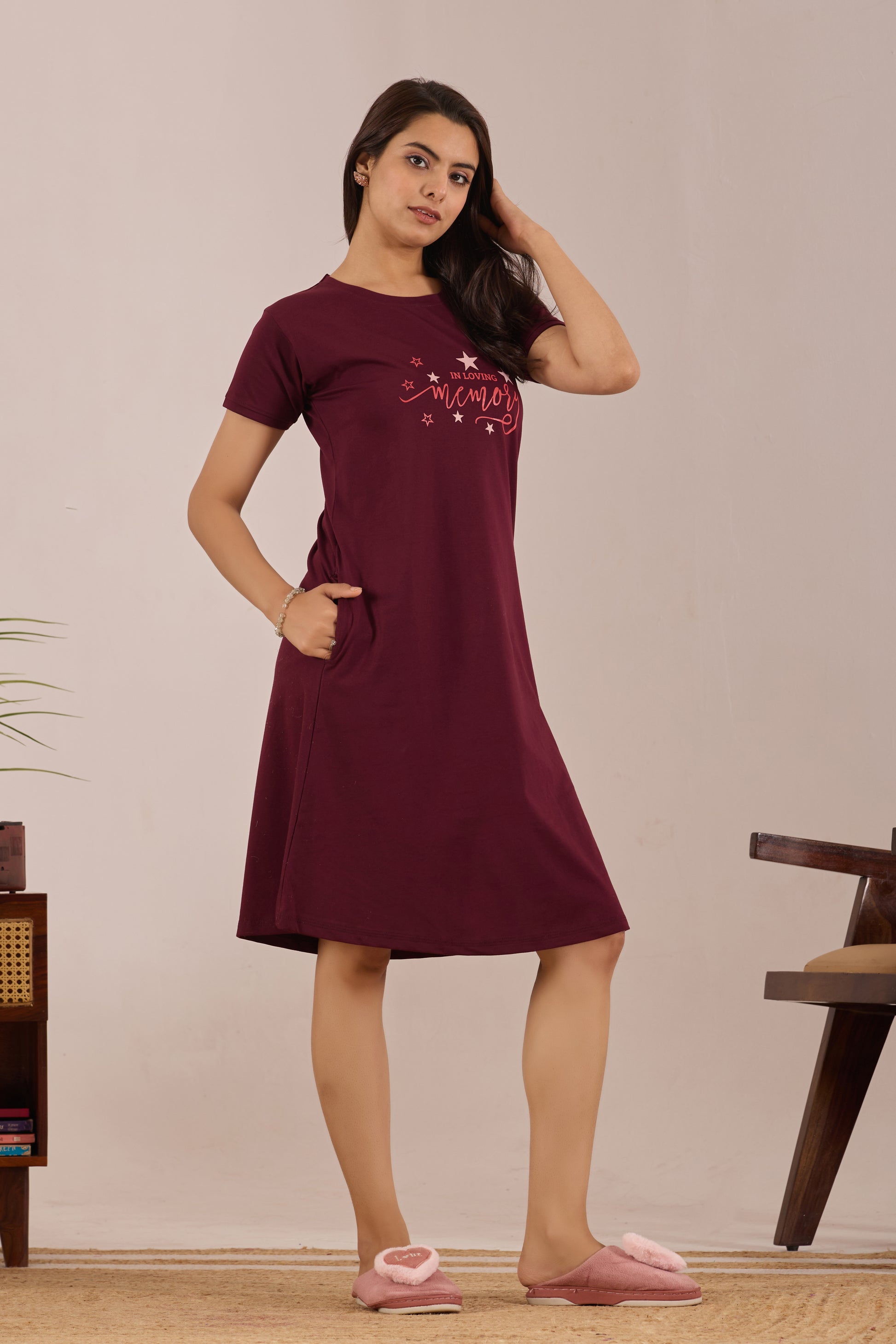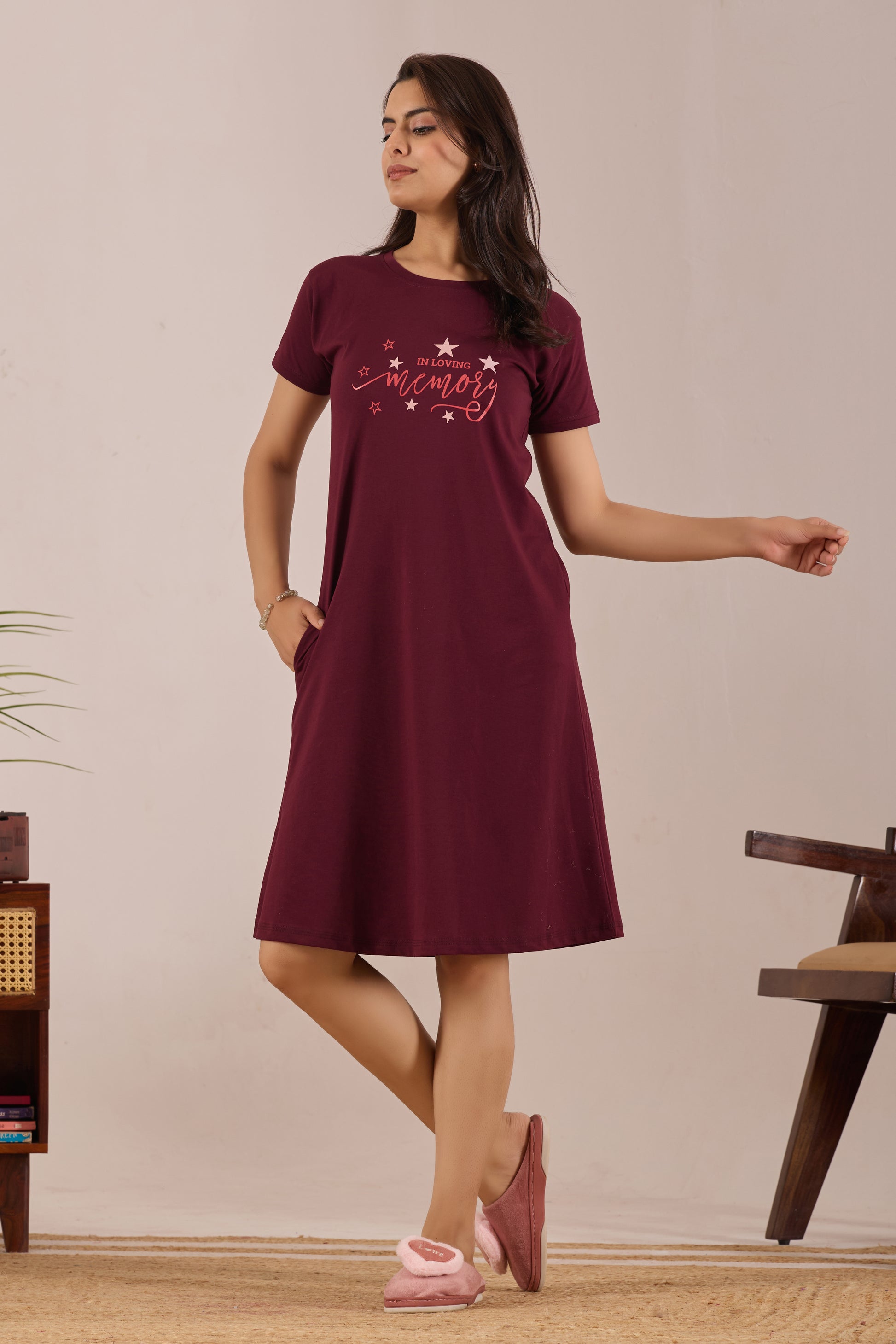 MAROON STARDUST MEMORY SHORT NIGHTY