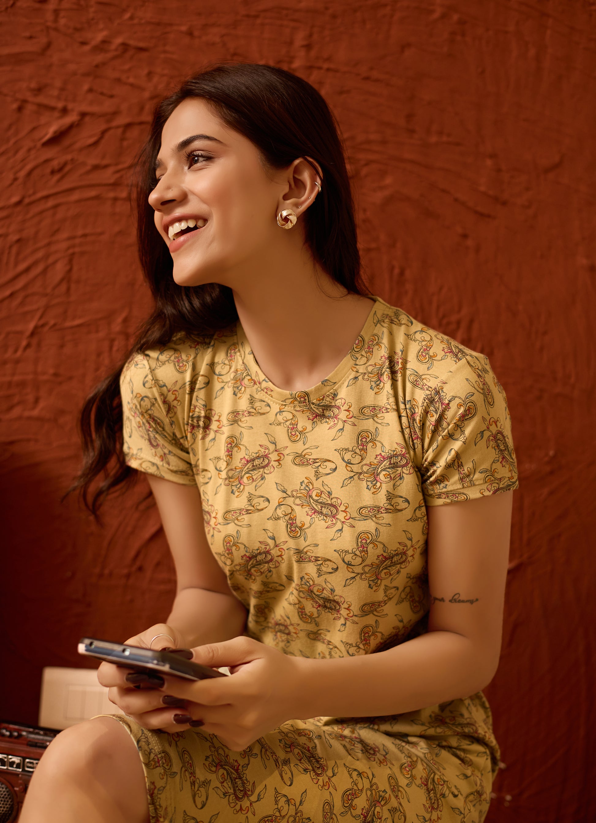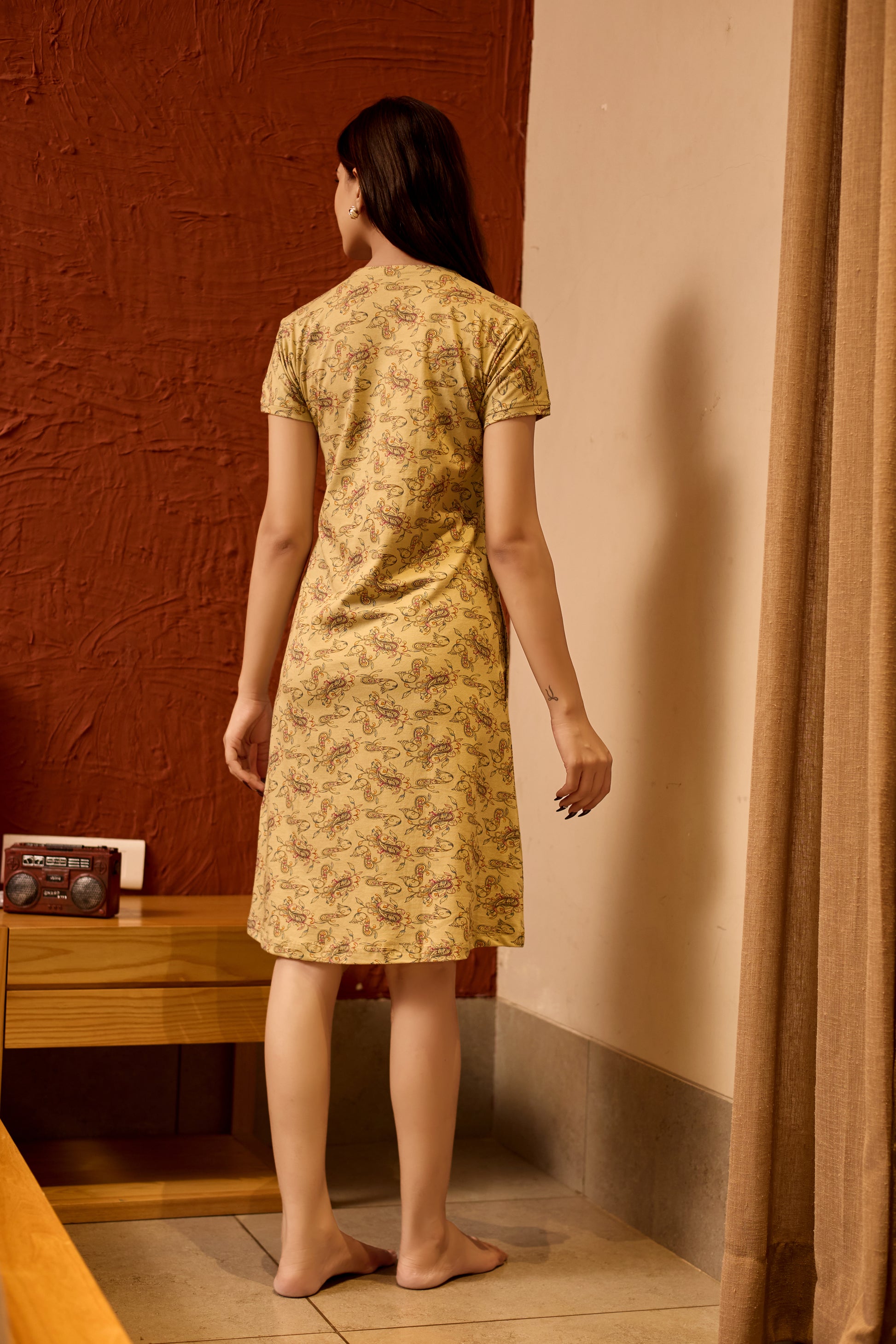 - SOFT BEIGE PAISLEY SHORT NIGHTY