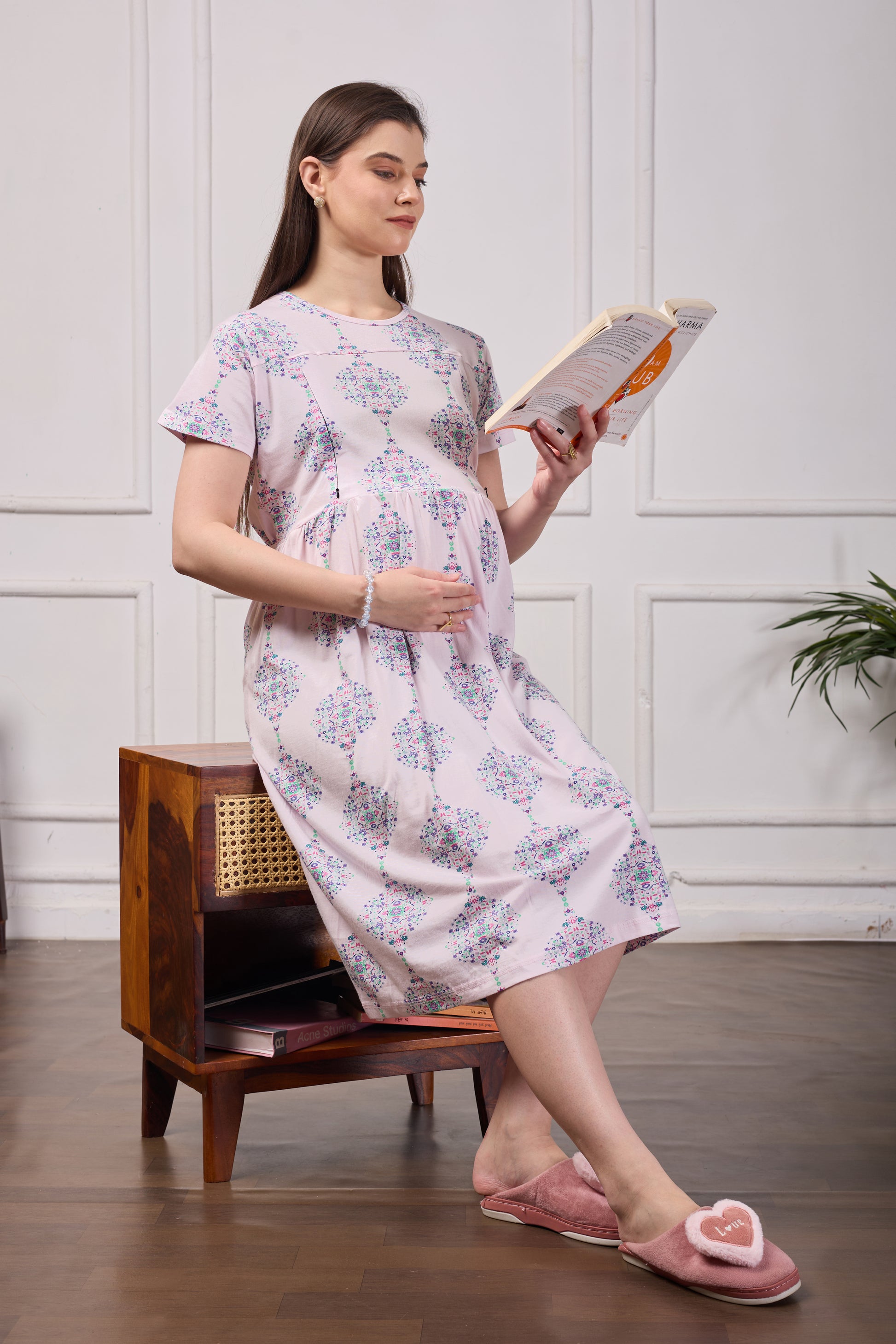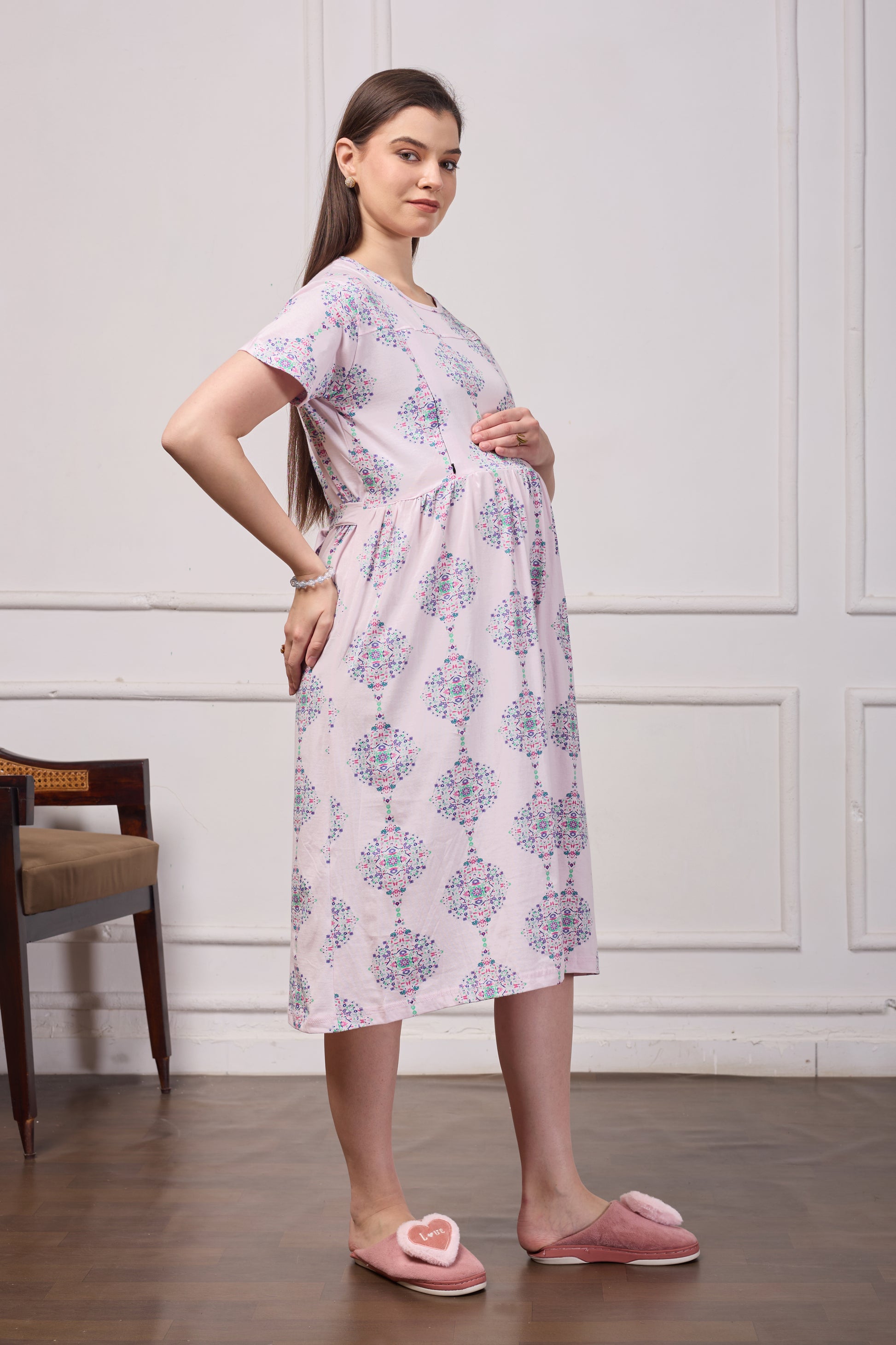 MATERNITY GOWN BLUSH MEDALLION MOSAIC