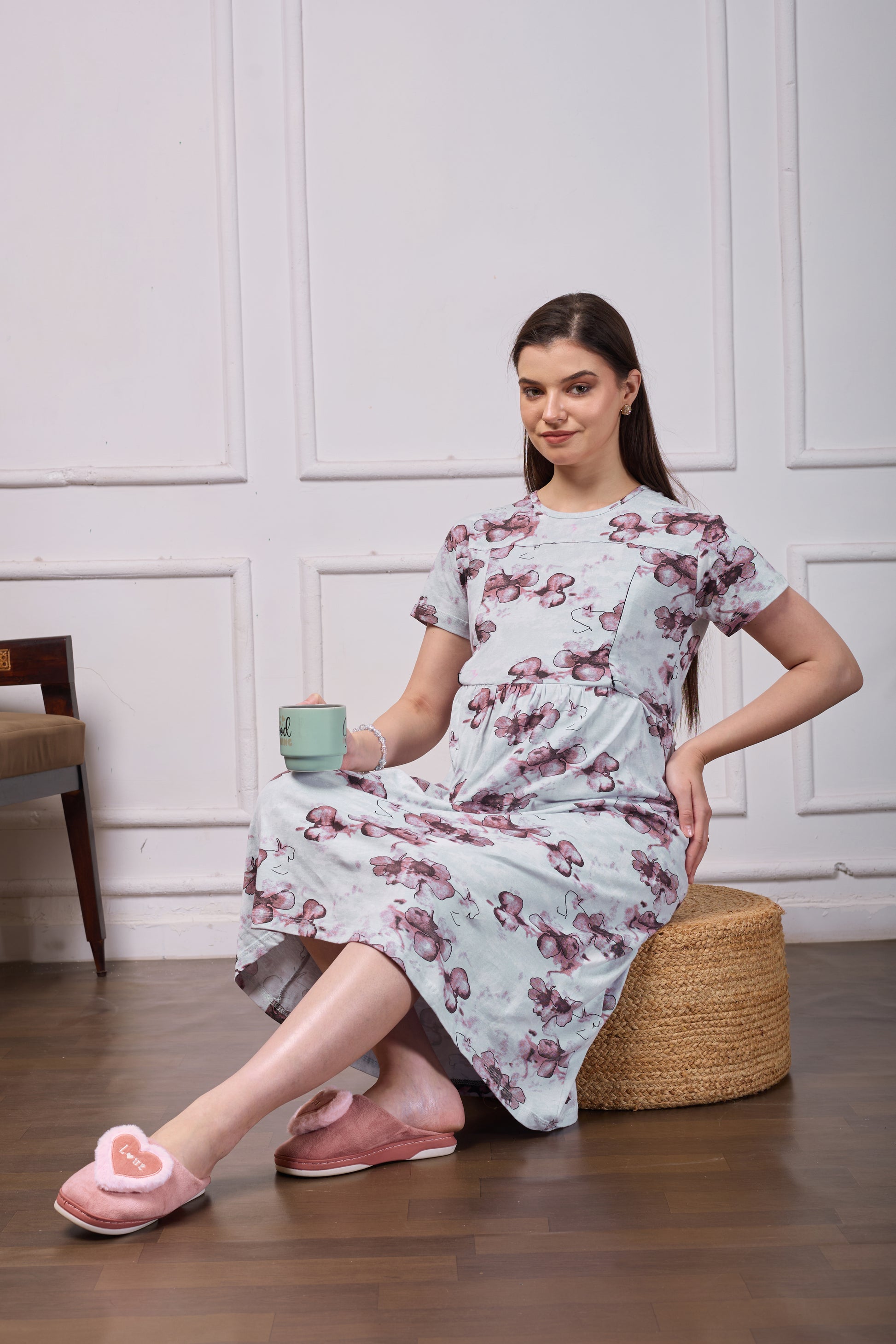 Maternity wear with zip feeding is designed to cater to breastfeeding mothers' needs, offering practicality and style without compromising comfort or fashion.