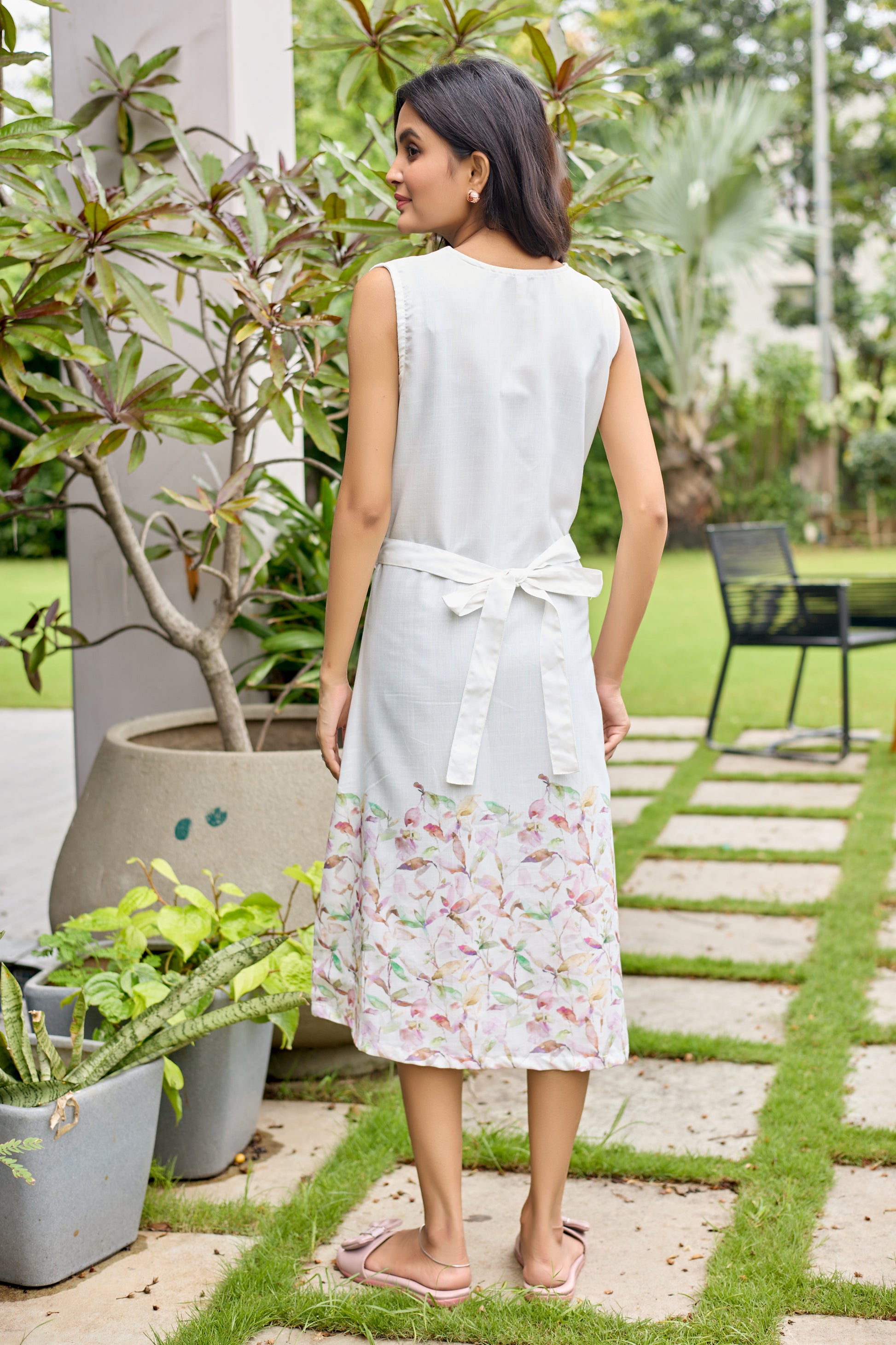 LIGHT PEARL LEAFES MIDI DRESS