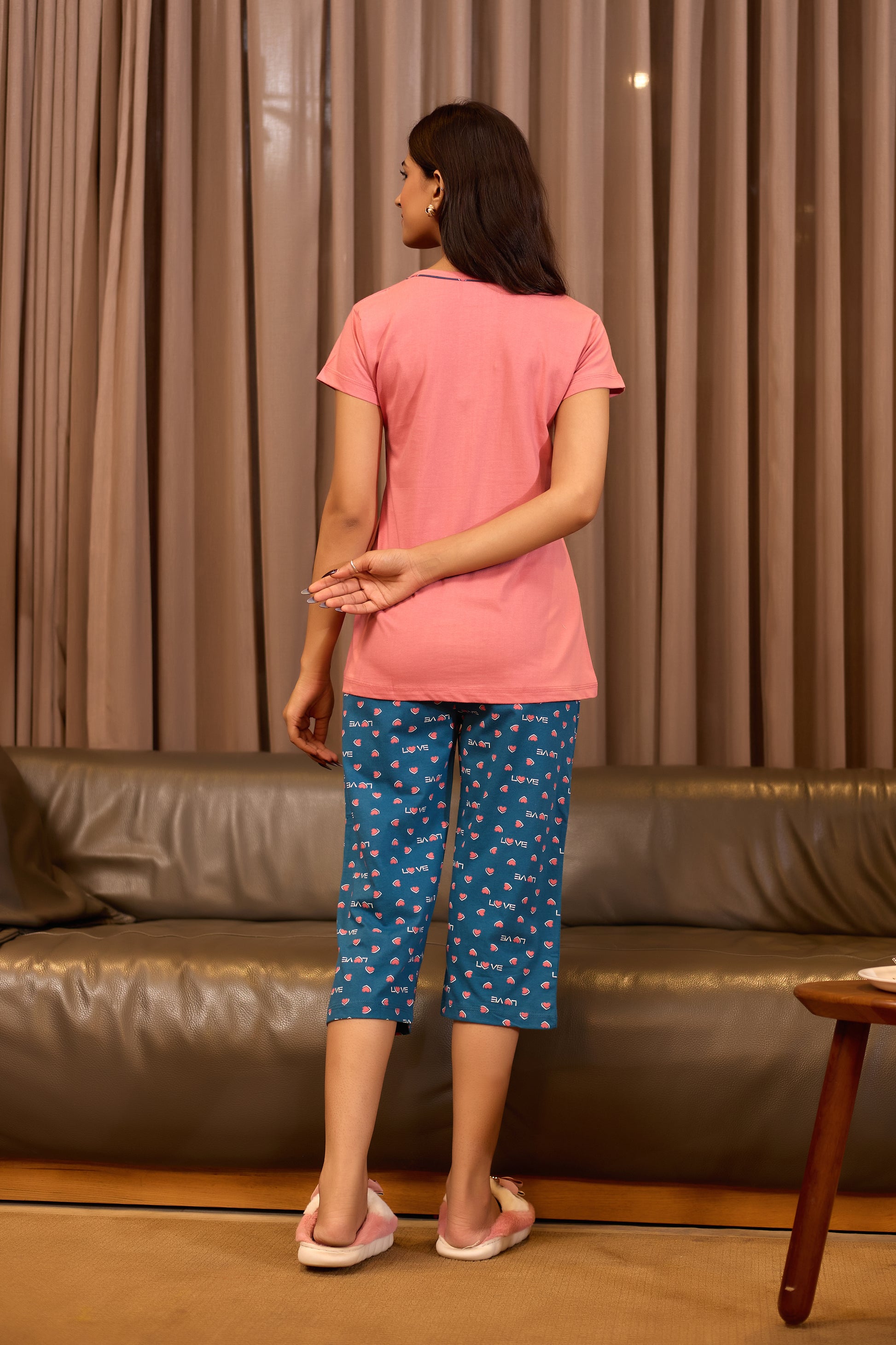 PINK LOVE HEART CAPRI SET